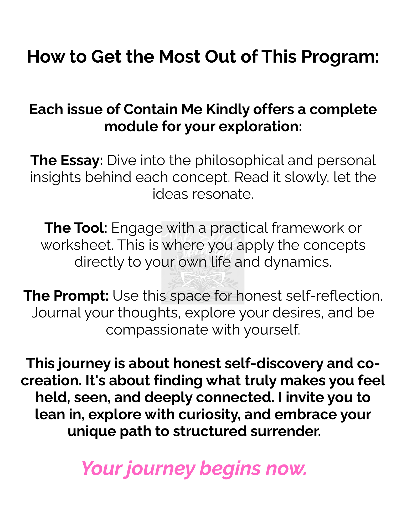 Contain Me Kindly explores how structure can feel like safety instead of control. Each issue combines a short essay, a practical system map, and reflective prompts designed to help people understand how power, care, and regulation work in their bodies.